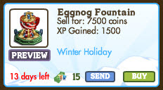 The Eggnog Fountain’s stay in the FarmVille Market is limited to just 13 days so act fast before it returns to the FarmVille vault.